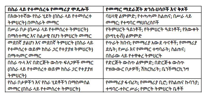 በስራ ላይ የተመሰረቱ የመማሪያ ሞዴሎች